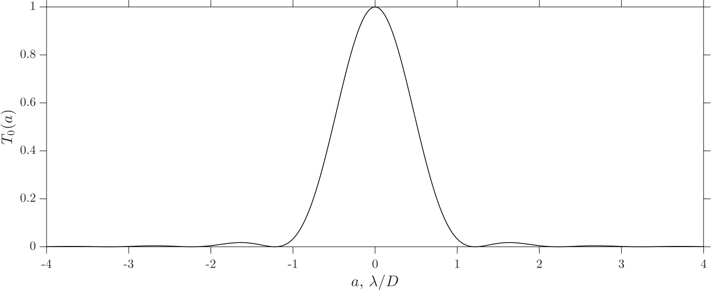 В идеальном случае без аберраций изображение точечного источника в результате дифракции на круговой апертуре становится неточечным, с угловым радиусом центрального пятна